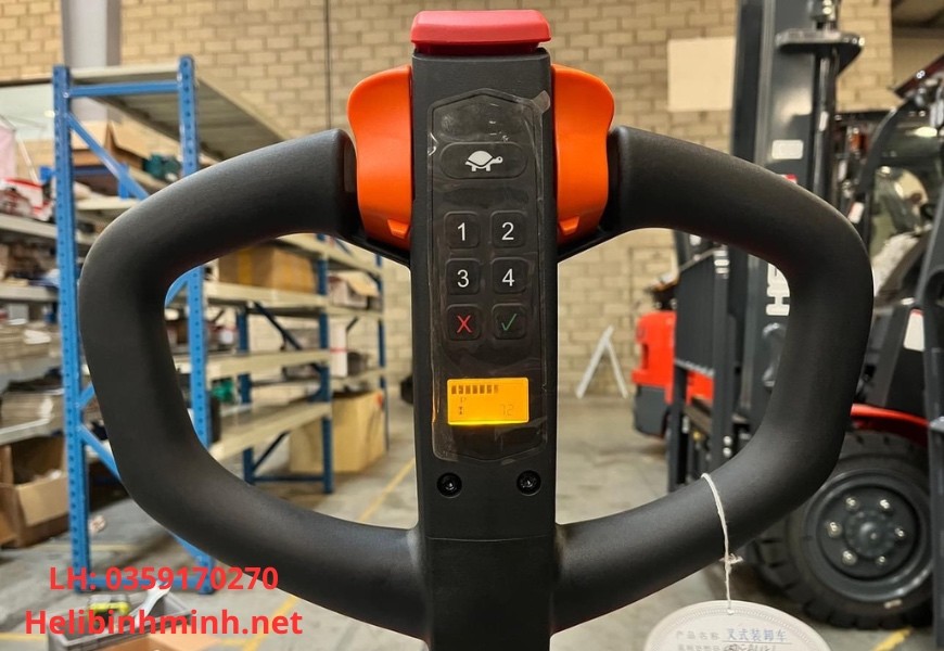 – Tay lái tích hợp điều khiển tiến lùi 2 bên và hệ thống nâng hạ bằng nút bấm.